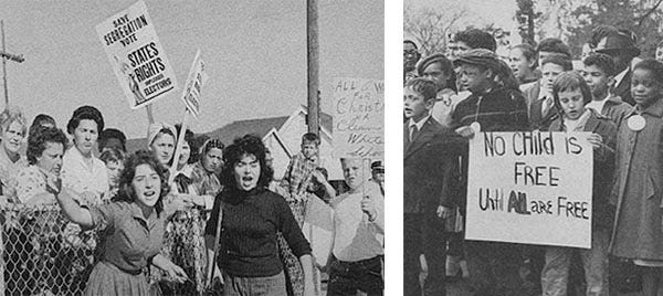 The virulent demonstrations that Ruby and her mother walked through with police protection were unkind and irrational. The contrast between them and the calm resolution of the children shown below, is startling.